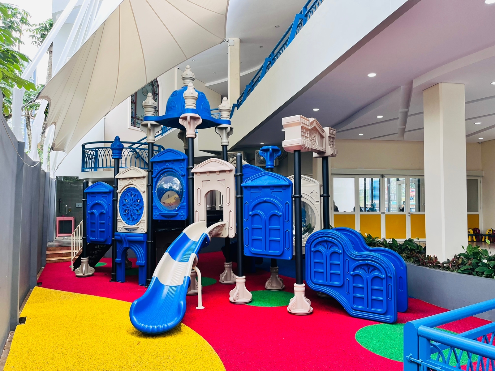A school playground is an outdoor space designed for students to play, socialize, and get physical exercise during recess and breaks. It’s a fun and active environment that is essential for a student’s development.